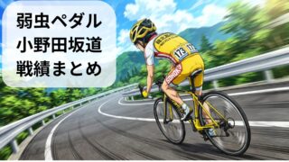 弱虫ペダルの主人公・小野田坂道の全レース戦績を完全網羅!ママチャリで秋葉原に通っていた少年が、どのようにして全国の頂点に立ったのか。その成長の軌跡を、レースごとに詳しく解説します。小野田坂道プロフィール【1年目】小野田坂道の戦績戦績一覧表(...